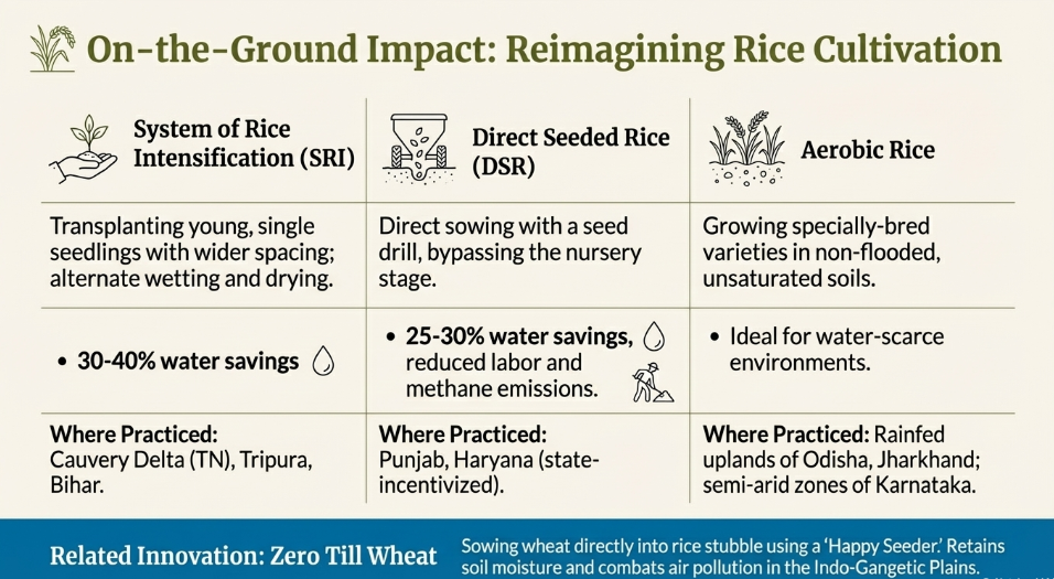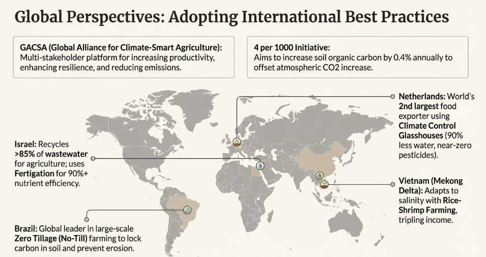 BioE3 Policy Implementation: Following the approval of the BioE3 (Biotechnology for Economy, Environment and Employment) Policy, the government has designated climate-resilient crops as a strategic thematic area. This policy expedites regulatory pathways for non-GMO gene-edited crops (SDN-1 & SDN-2 categories) that are resistant to heat and salinity, moving them from labs to field trials.